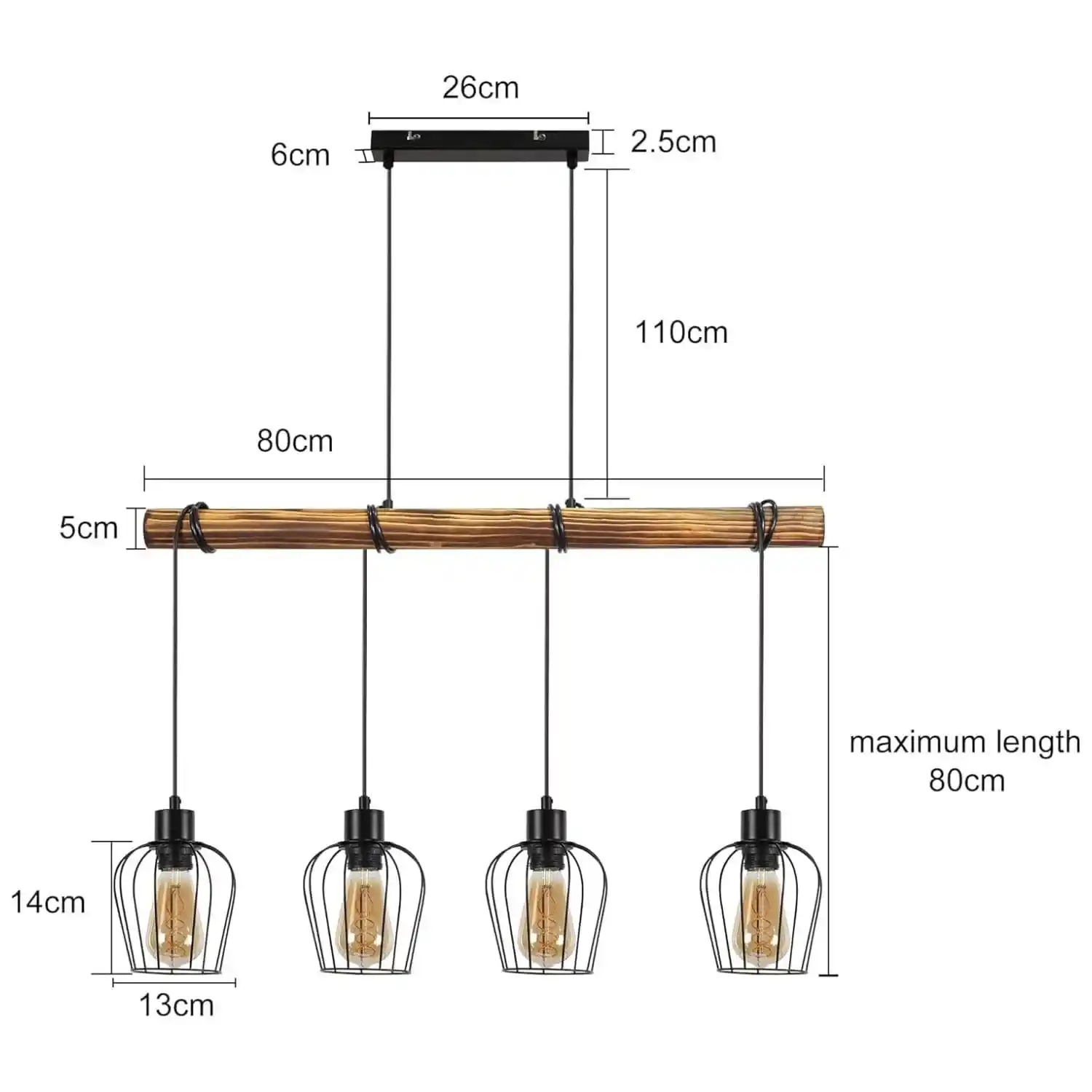 Les abat-jour en métal offrent une finition antirouille grâce à une peinture pulvérisée, résistant ainsi aux effets du temps. De plus, la poutre en bois possède des ondulations et des veinures avec certaines imperfections qui ajoutent plus de personnalité à votre décoration.