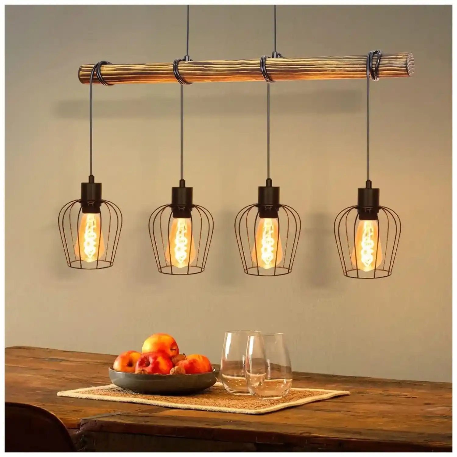 Optez pour le caractère fort du style industriel et la nature avec la suspension luminaire en bois.